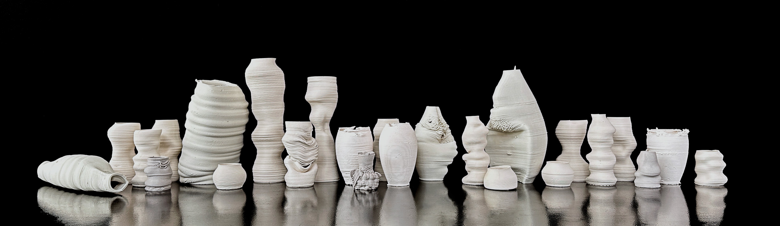 This work is exactly as the title describes; 25 attempts at making a vase. The pieces included in this collection are artifacts from my years learning how to 3D print with clay, produced from experiments with different forms, tools and clay bodies.