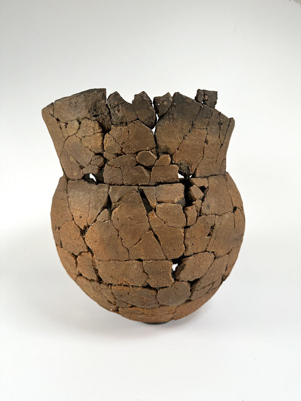 Fracture pot, 3D-printed and hand-sculpted mixed clay (greenware).